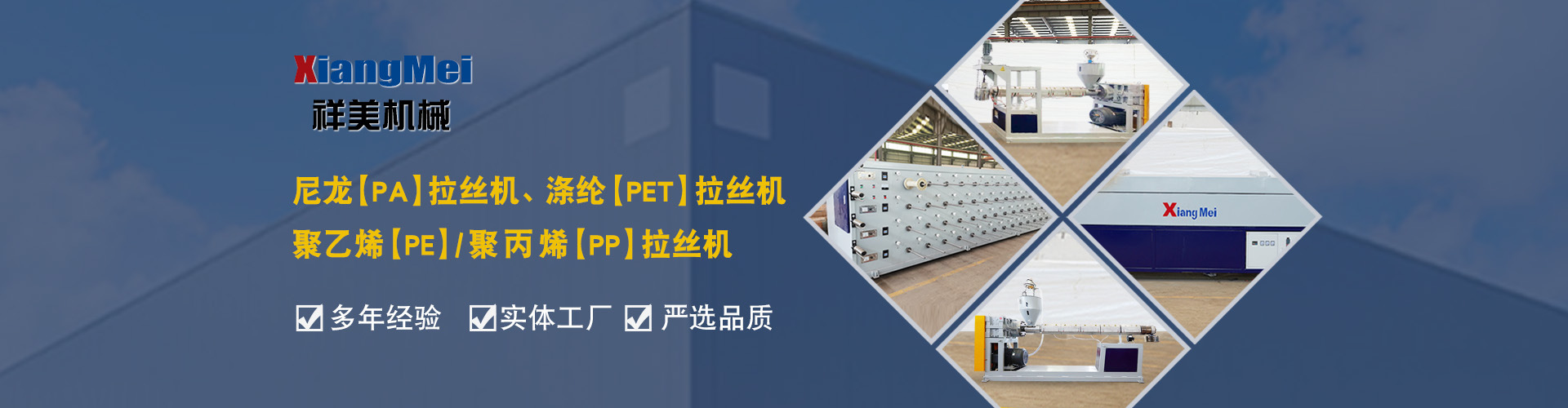 我公司是一家具有30多年專業(yè)生產(chǎn)塑料拉絲機的企業(yè),作為國內最早生產(chǎn)圓絲塑料拉絲設備的企業(yè),成為國內同行競相爭仿的標桿,公司產(chǎn)品主要可以生產(chǎn)聚乙烯(PE)、尼龍(PA)、聚丙烯(PP)、滌綸(PET)等作原料拉絲機設備及其配套設備、鉛芯機設備及其配套設備,拉絲機設備主要生產(chǎn)的產(chǎn)品有單絲、復絲、扁絲、刷絲、草坪絲、拉鏈絲、割草線等各類線絲,公司產(chǎn)品在國內同行業(yè)中性價比高、有良好的口碑,曾獲“國家高新技術、新產(chǎn)品博覽會金獎”被輕工部定位替代進口產(chǎn)品、國家級新產(chǎn)品,并多次獲得省、市科技進步獎,產(chǎn)品遍布全國大部分地區(qū),并遠銷日本、意大利、俄羅斯、韓國、印度、澳大利亞、印度尼西亞、墨西哥、菲律賓、泰國、朝鮮、巴基斯坦、烏茲別克斯坦、越南、馬來西亞、老撾、越南、坦桑尼亞等國家和地區(qū)。 公司實行現(xiàn)代化企業(yè)管理,始終秉承以科技為先導,制造為基礎,管理為核心的企業(yè)面貌,運用先進的生產(chǎn)設備,創(chuàng)新的思維理念,確保產(chǎn)品多樣化、系列化,高品質,把誠信、責任、創(chuàng)新作為祥美人不斷的追求的目標,為新老客戶打造高品質的拉絲設備。 公司位于黃海之濱、亞歐大陸橋東橋頭堡的海濱城市——連云港,這有海陸空便捷的交通網(wǎng)絡、風景秀麗的山海風光,總經(jīng)理江中堯先生攜公司全體員工竭誠歡迎各界人士、中外新老客戶來連洽談業(yè)務。